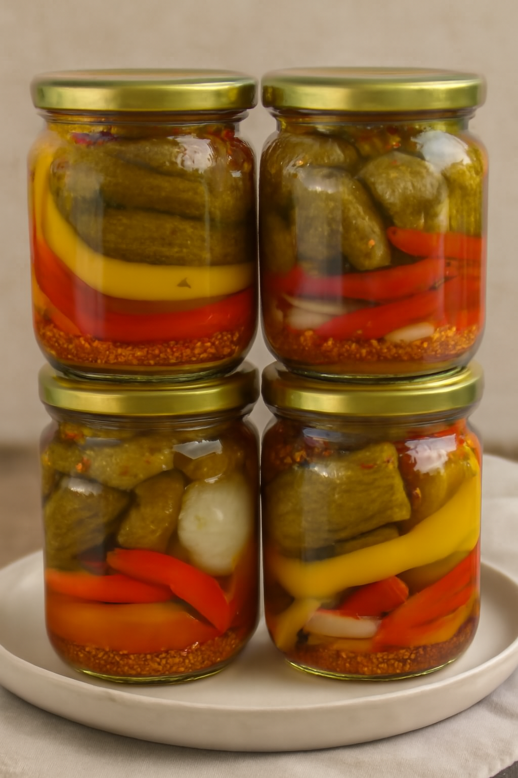 W słoiku układaj warstwami: śledzie → sos → śledzie → sos, aż do wypełnienia naczynia.
