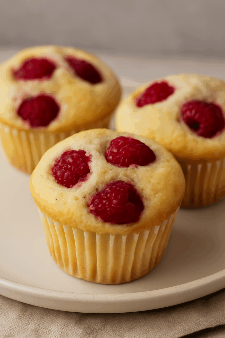 Na wierzchu każdej babeczki ułóż po 2–3 maliny.
