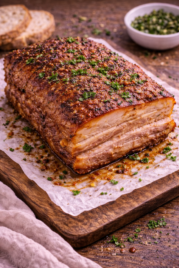 Po upieczeniu wyjąć boczek z piekarnika i odstawić na 10 minut przed krojeniem.