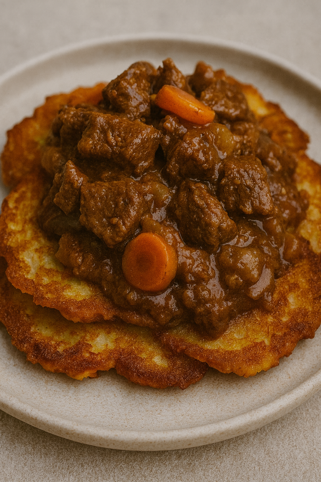 Placki ziemniaczane z gulaszem wołowym