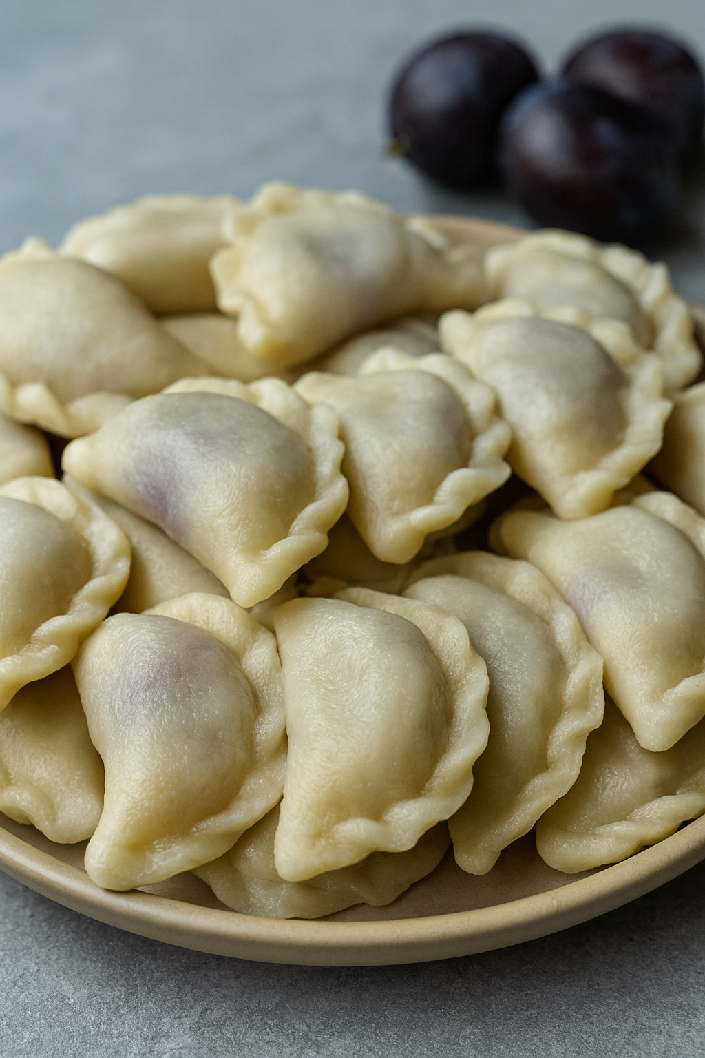Składniki: Ciasto na pierogi: 500 g mąki pszennej ok. 250 ml gorącej wody 2 łyżki oleju lub roztopionego…