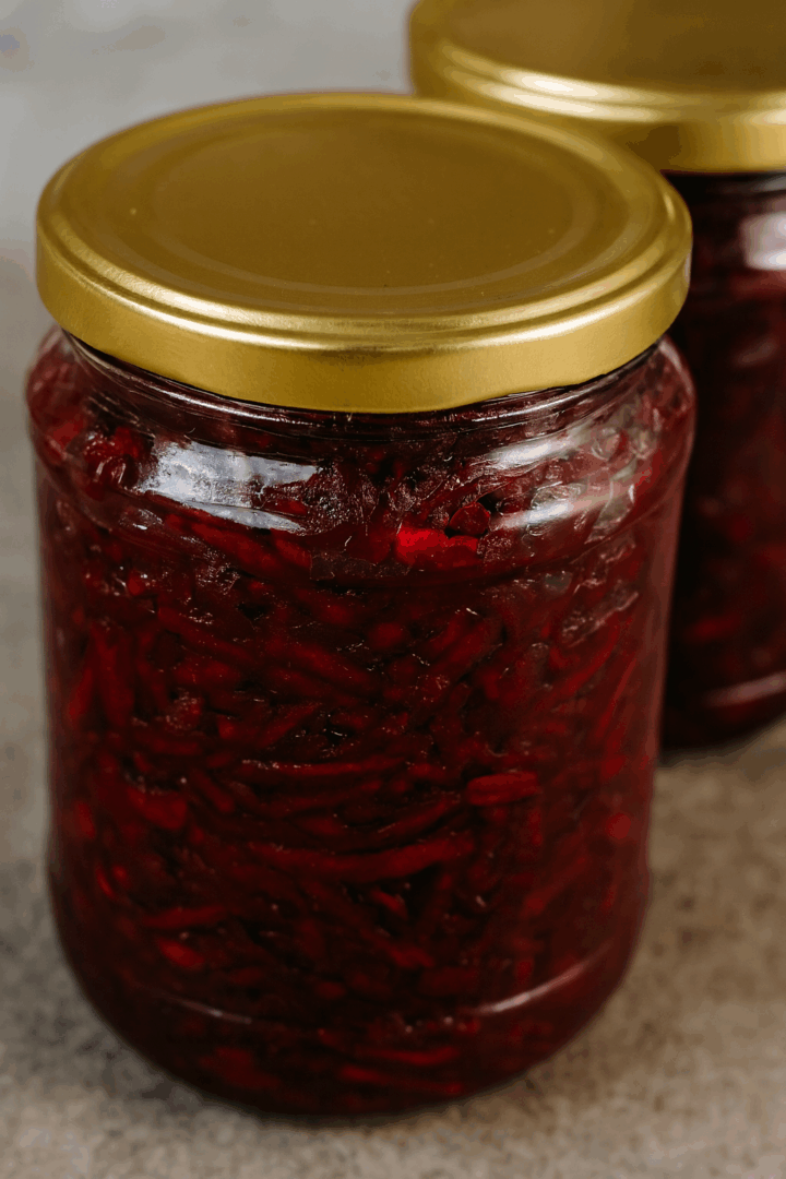 • Buraczki można utrzeć też na ćwikłę z chrzanem – wtedy po pasteryzacji dodaje się tarty chrzan (ok. 2–3 łyżki na słoik) i miesza na świeżo.