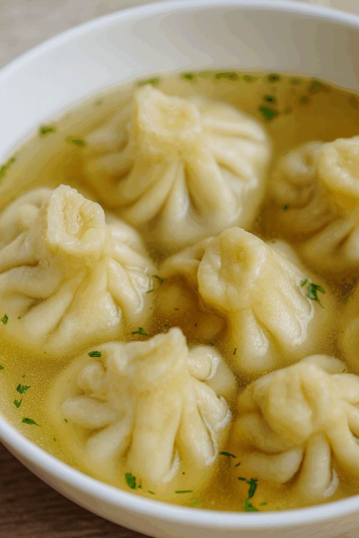 Wrzucaj chinkali partiami, mieszaj delikatnie, aby się nie przykleiły.
