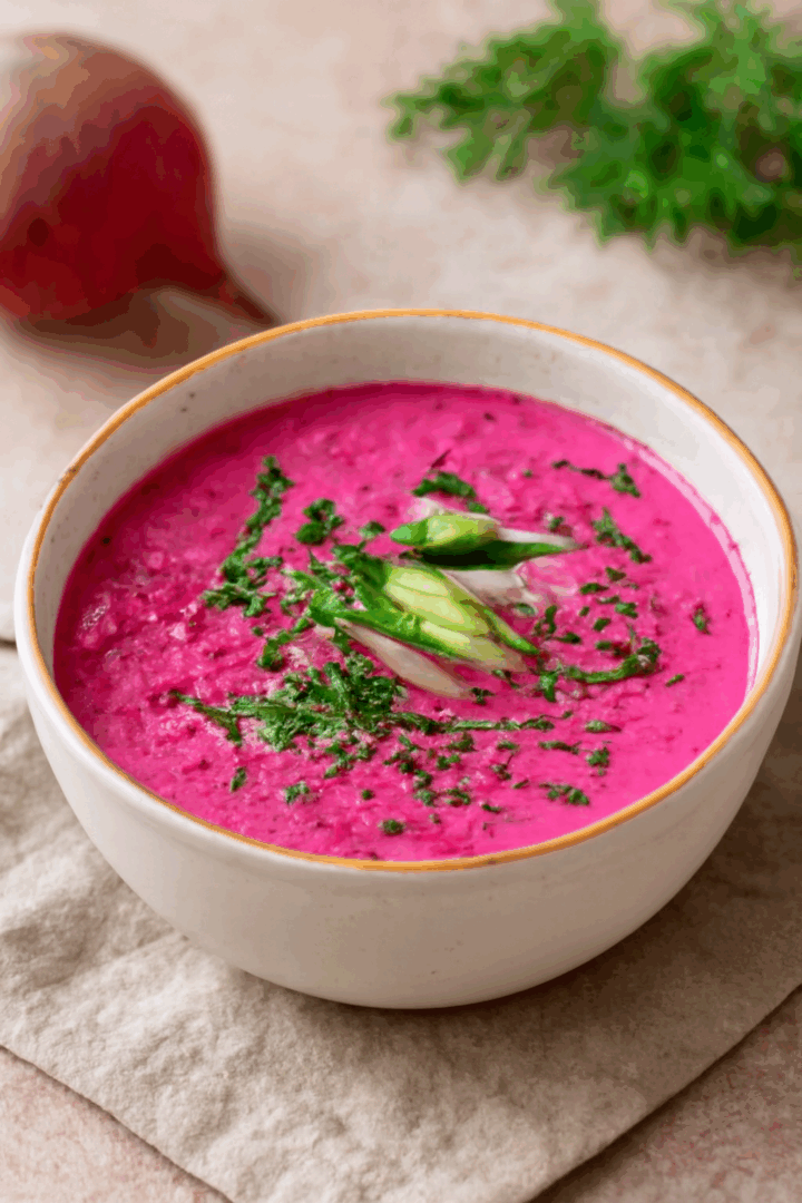 Podawaj schłodzony z ugotowanym na twardo jajkiem i świeżym koperkiem/posypką z ziół.