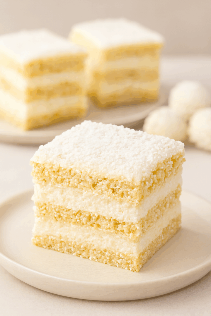 Wierzch ciasta posyp wiórkami kokosowymi.