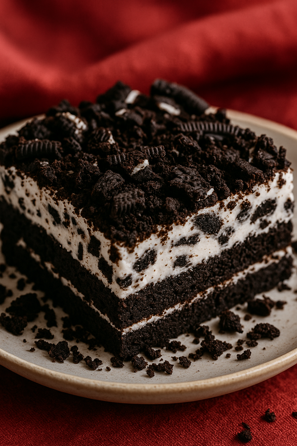 Śmietankę do warstwy waniliowej ubić na półsztywno. Serek kremowy zmiksować z cukrem pudrem i ekstraktem waniliowym, następnie delikatnie połączyć ze śmietanką. Masę wyłożyć na warstwę czekoladową i wyrównać. Schłodzić 30 minut.