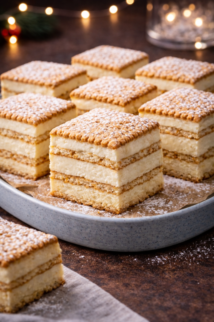 Ciasto warstwowe z kremem waniliowym i herbatnikami (bez pieczenia)