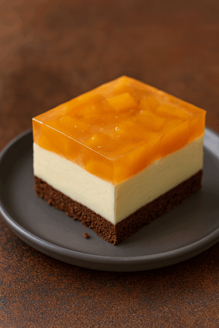 Ciasto z musem serowym, brzoskwiniami i galaretką