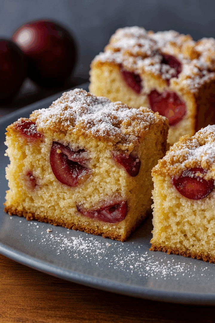 - 8–10 śliwek (np. węgierek lub czerwonych), przekrojonych na pół i wypestkowanych