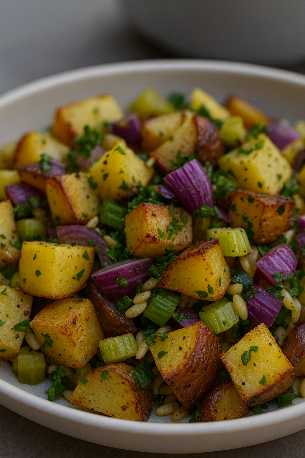 Składniki: 500 g ziemniaków 1 czerwona cebula 2–3 łodygi selera naciowego 2 łyżki oliwy z oliwek sól i…