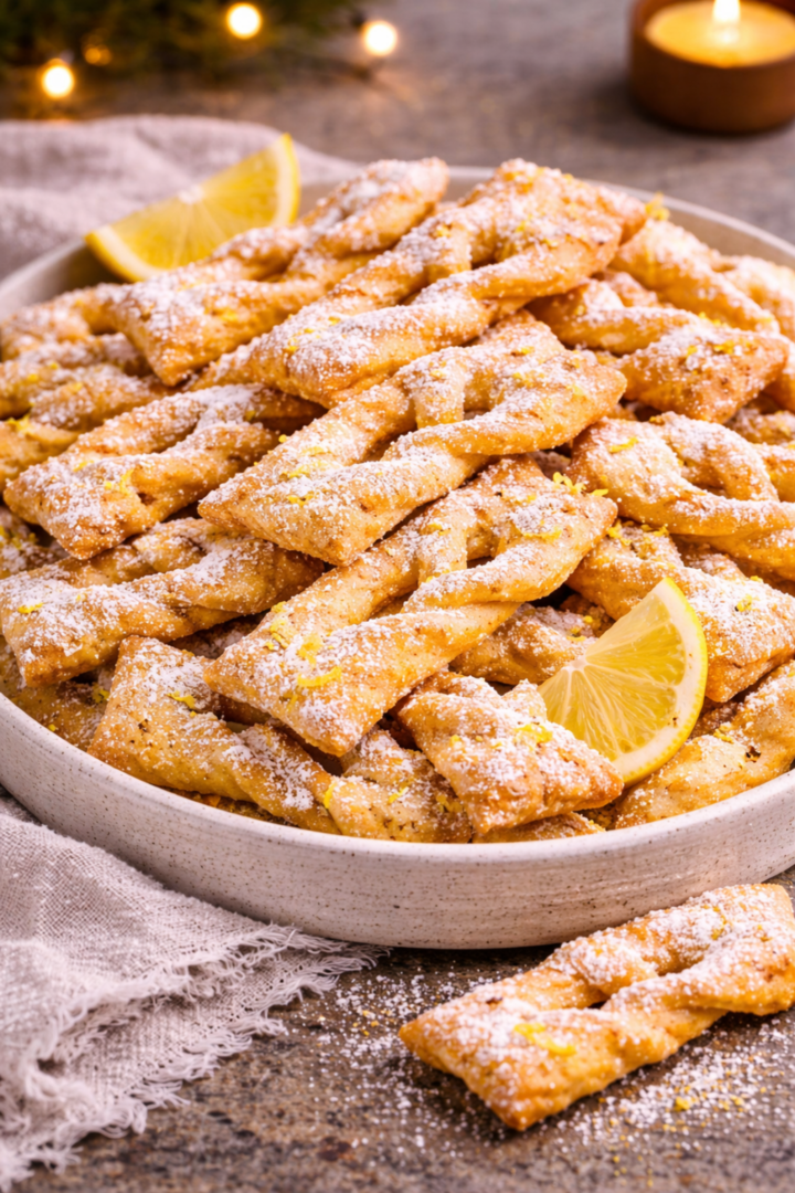 Cytrynowe faworki pieczone (skręcane ciasteczka cytrynowe)
