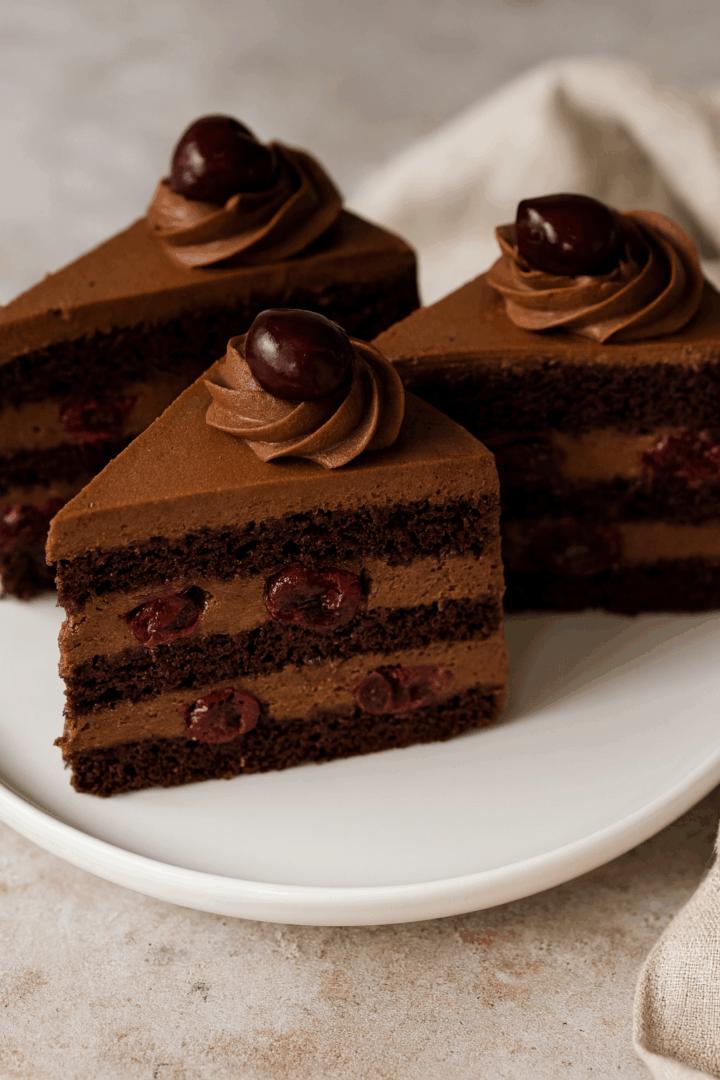Czekoladowe ciasto z wiśniami i kremem czekoladowym