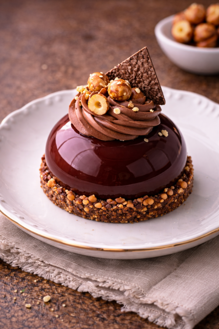 Czekoladowe monoporcje z orzechami laskowymi i polewą lustrzaną