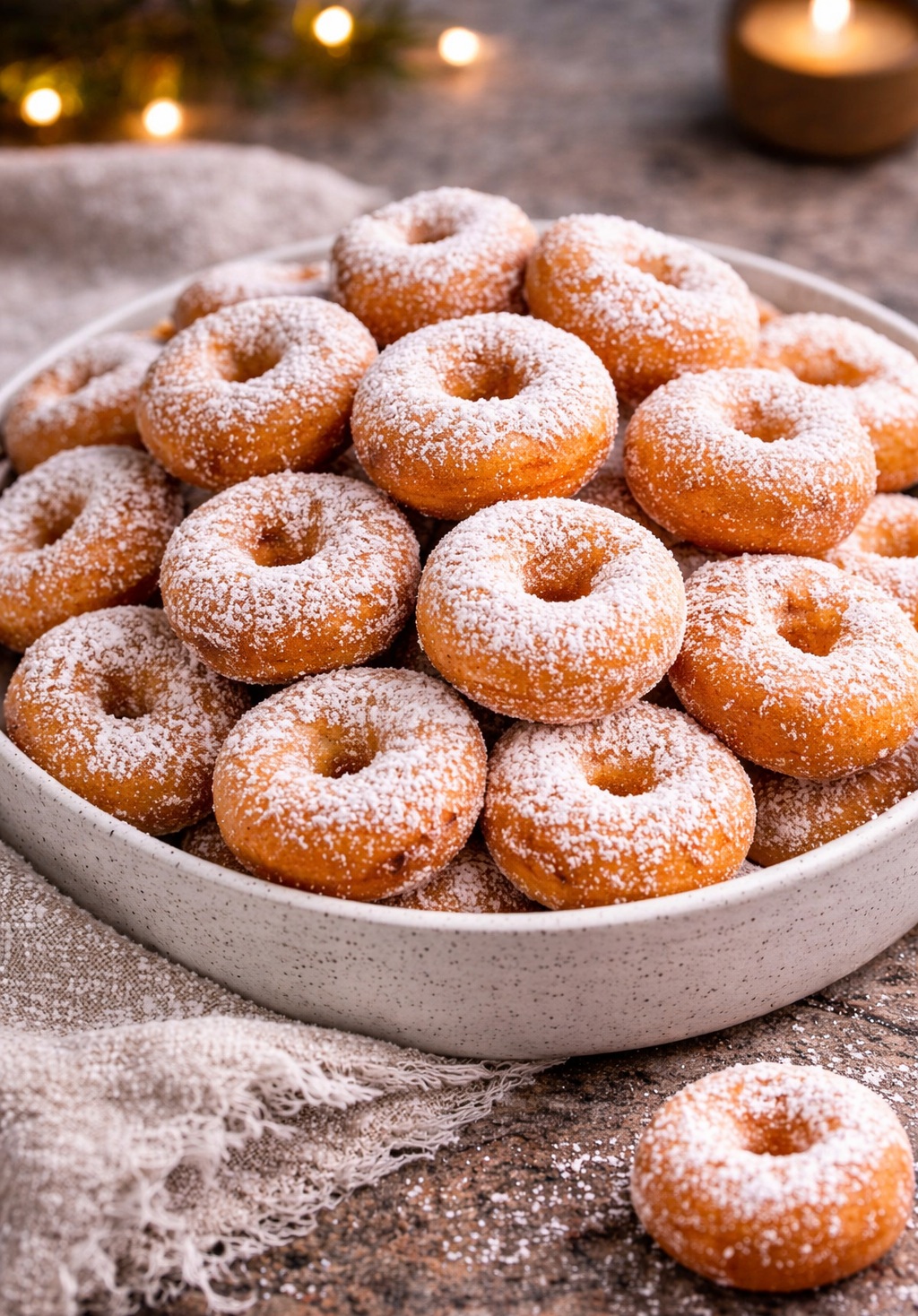 Mini pączki jogurtowe oprószone cukrem pudrem