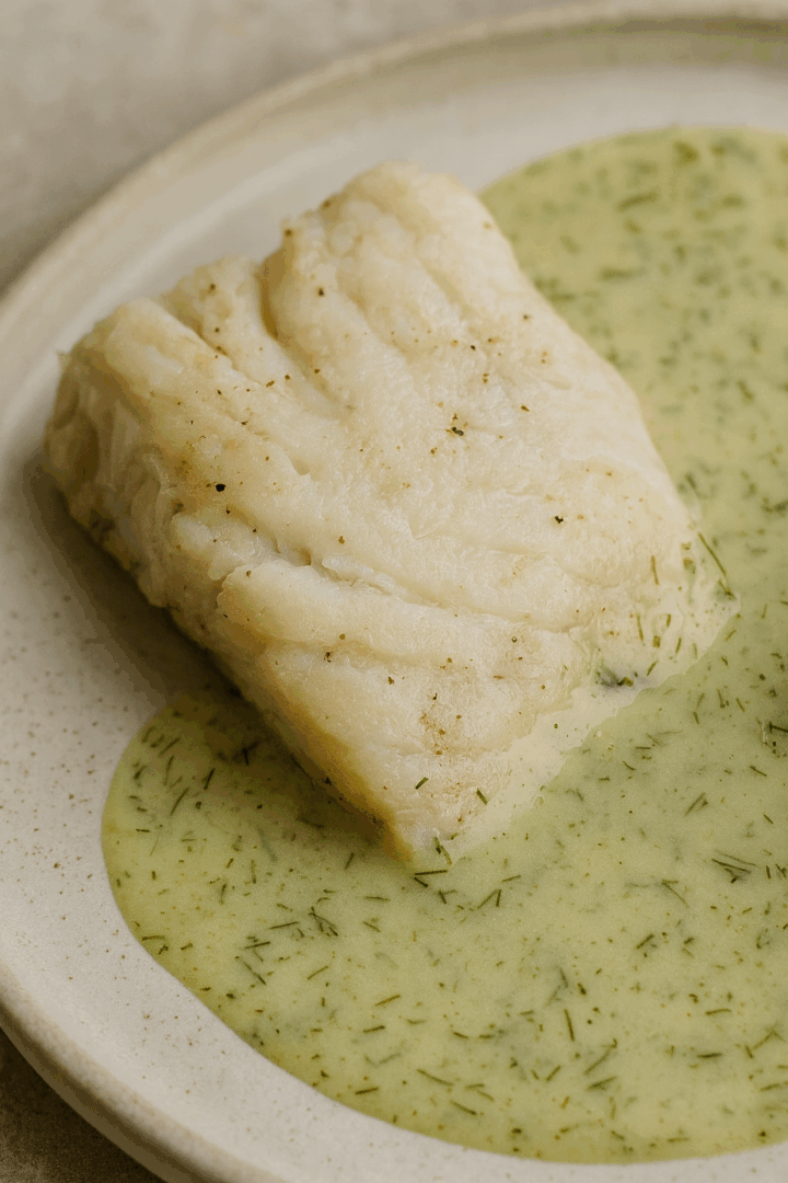 Filety ułóż na talerzach, polej obficie sosem koperkowym.