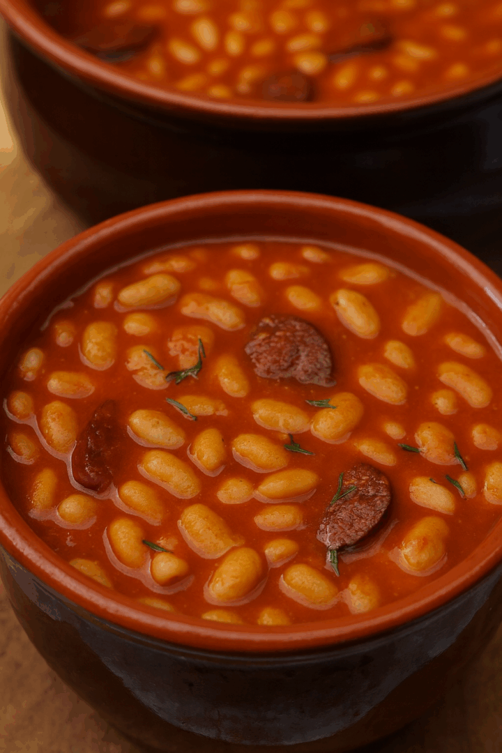Do garnka z fasolą dodaj podsmażone mięso z cebulą.