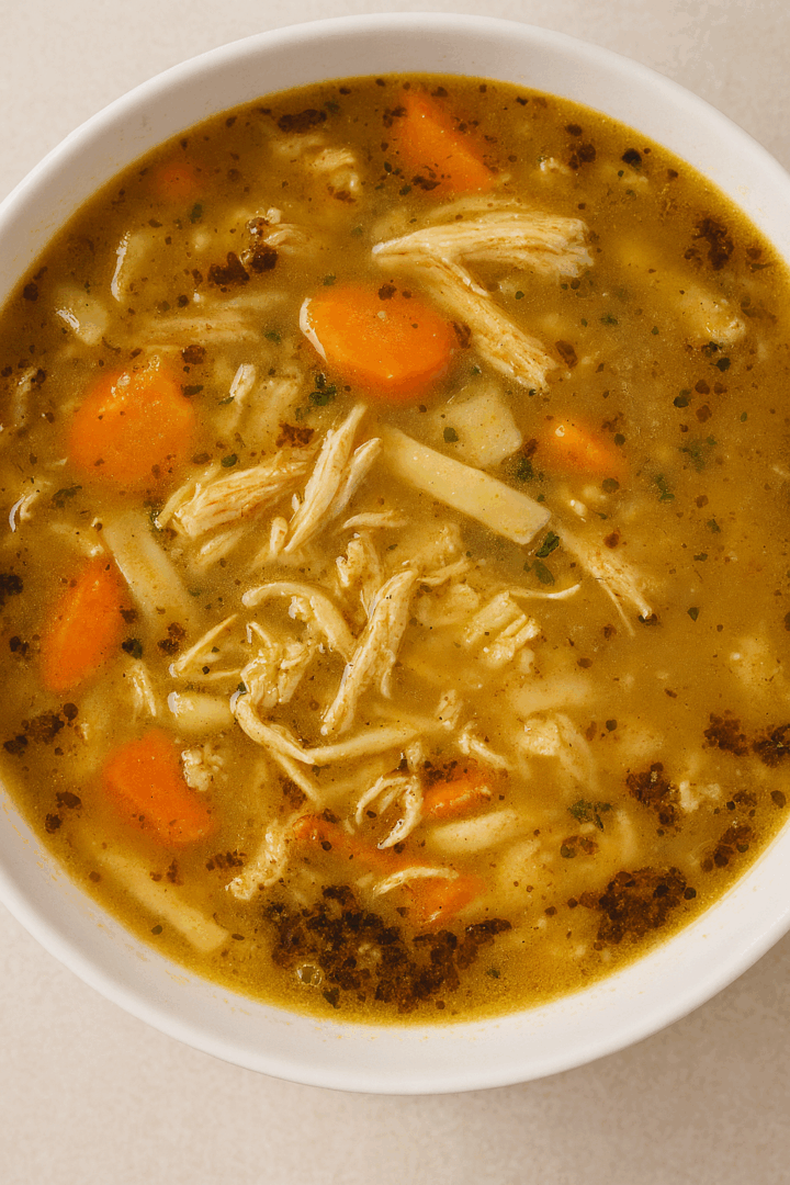 Wegańska wariacja: Pomiń flaki i mięso; jako bazę użyj bulionu warzywnego, dodaj smażone plastry boczniaków zamiast flaków.