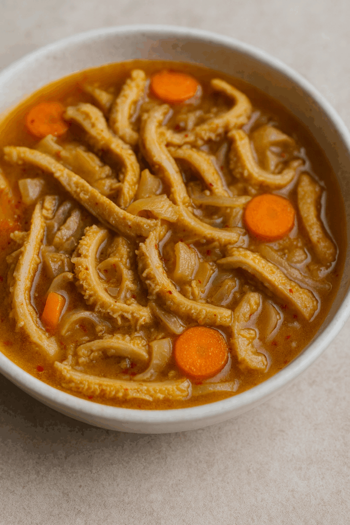Pokrój flaki w cienkie paski i wrzuć do przygotowanego bulionu. Gotuj ok. 1,5–2 godziny, aż będą miękkie.