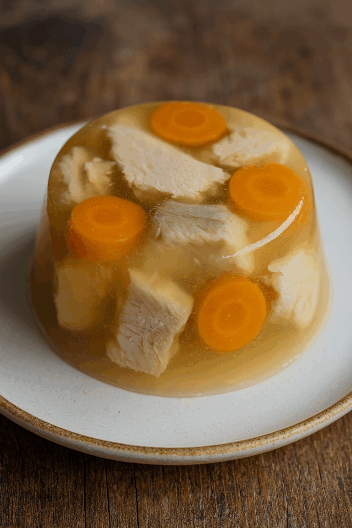 Zalej gorącym bulionem z żelatyną. Odstaw do lodówki na kilka godzin, aż galareta stężeje.