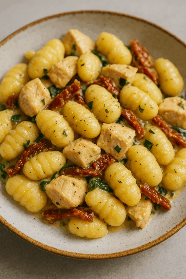 Gnocchi z kurczakiem suszonymi pomidorami i szpinakiem
