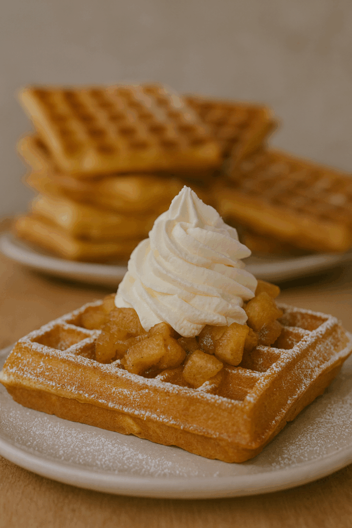 Gofry z duszonymi jabłkami i bitą śmietaną