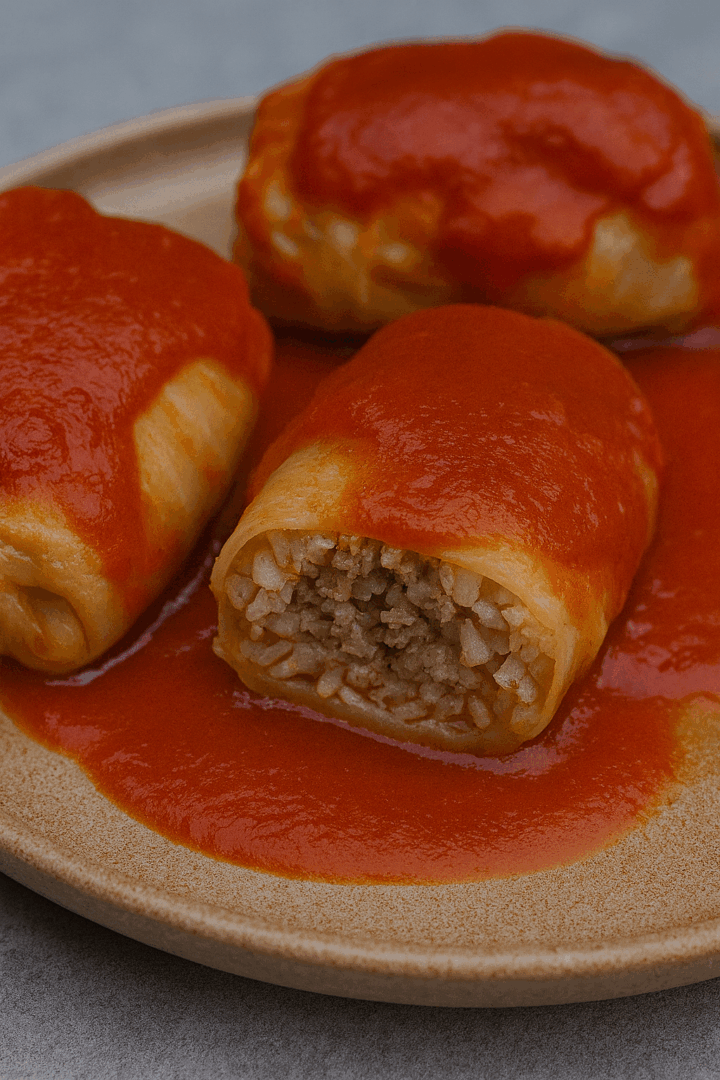 Gołąbki polać sosem pomidorowym.