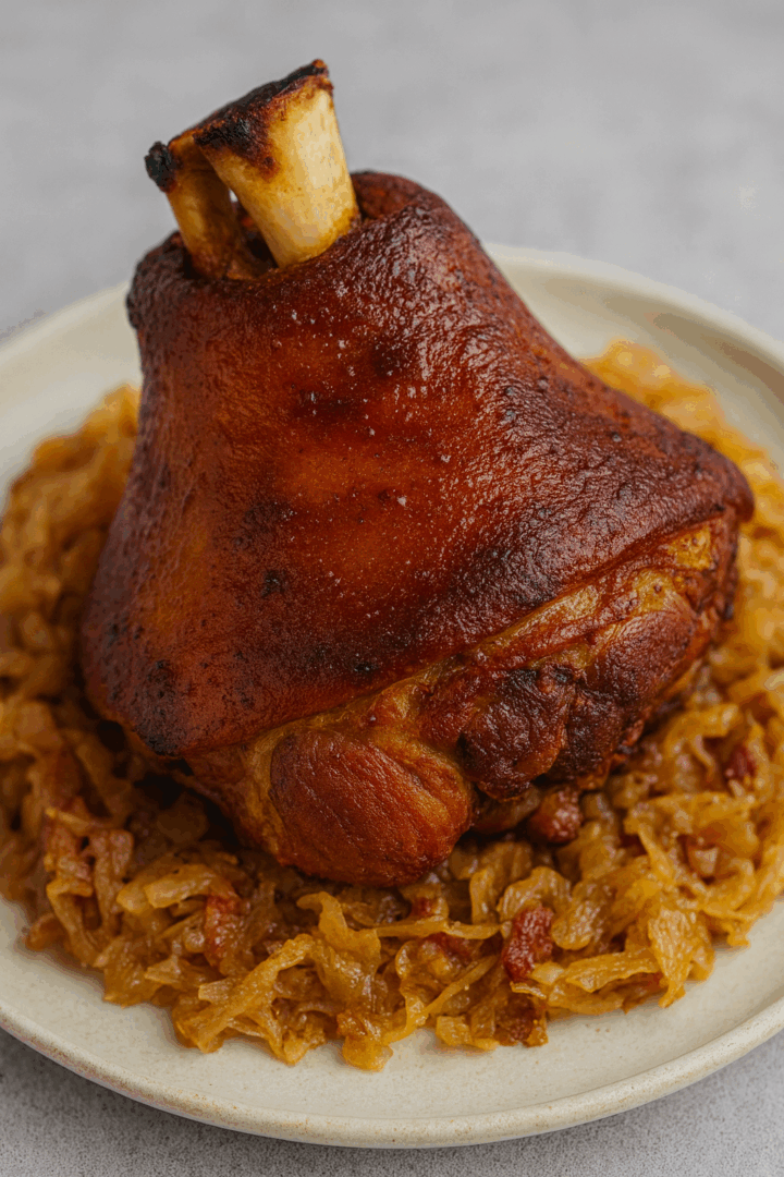 Piecz w piekarniku nagrzanym do 180°C przez około 2,5–3 godziny. Co jakiś czas podlewaj sosem spod pieczenia. Ostatnie 20–30 minut odkryj naczynie, aby skórka golonki stała się rumiana i chrupiąca.