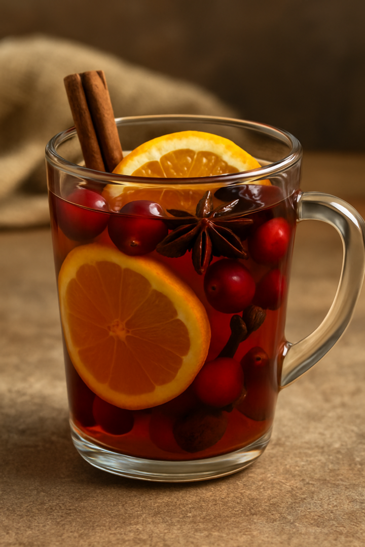 Podgrzewać napój przez około 10 minut, aż owoce zaczną lekko pękać, a przyprawy uwolnią aromat. Nie doprowadzać płynu do wrzenia. Po tym czasie zmniejszyć moc palnika do niskiej i kontynuować podgrzewanie przez kolejne 10 minut.