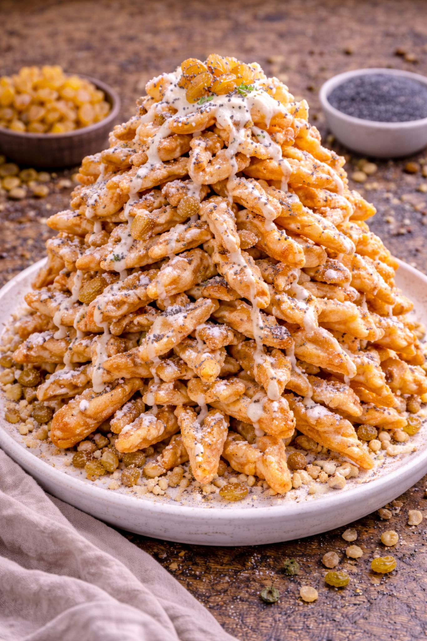 Składniki: Chrust: 500 g mąki pszennej 5 żółtek 2 całe jajka 2 łyżki kwaśnej śmietany 18% 2 łyżki…