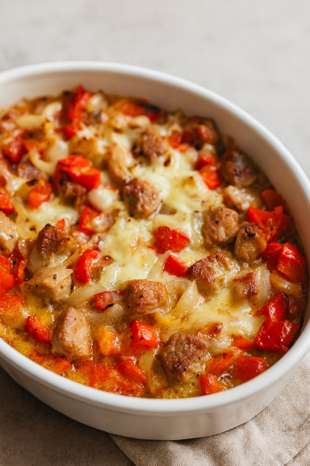 Zapiekanka z mięsem i papryką