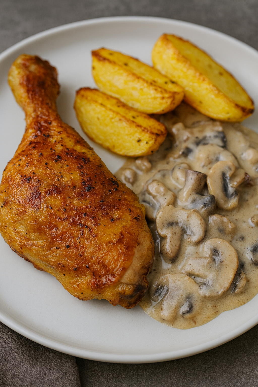 Kurczak z ziemniakami i sosem pieczarkowym