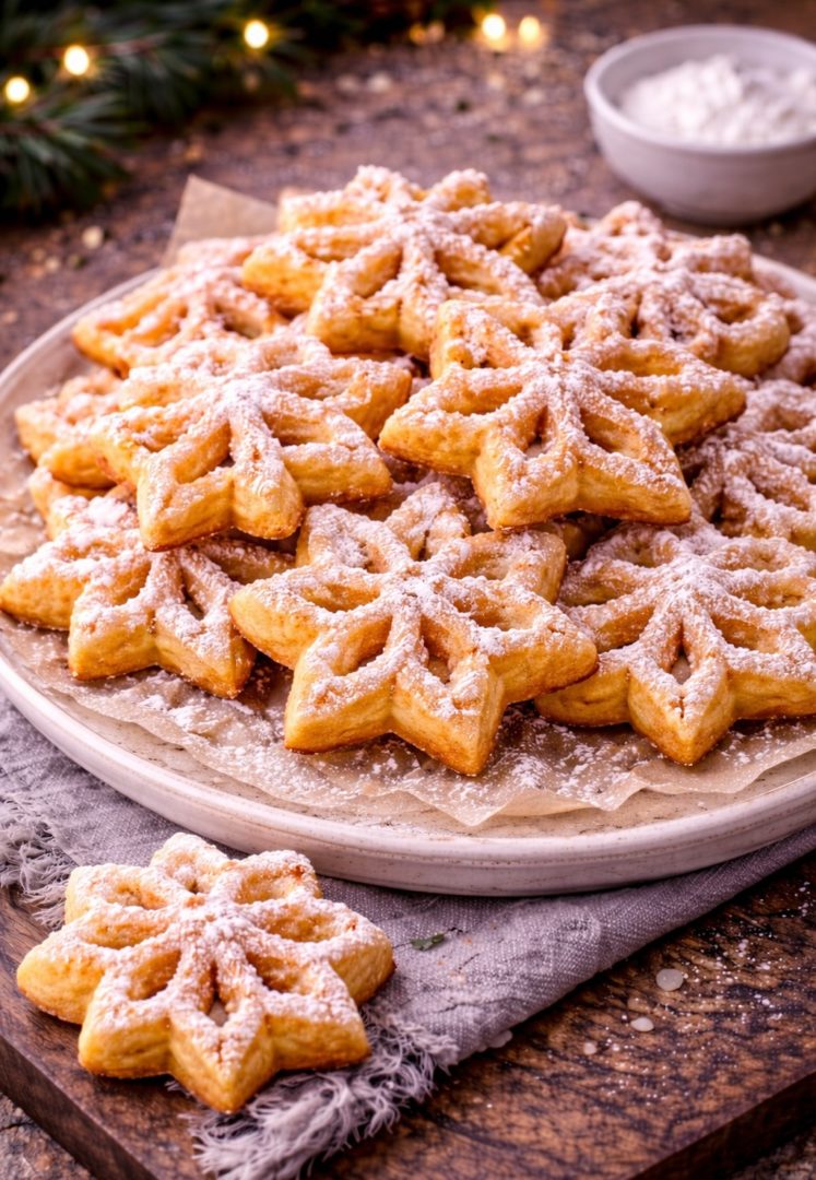 Usmażone ciastka odsączyć i po wystudzeniu posypać cukrem pudrem.