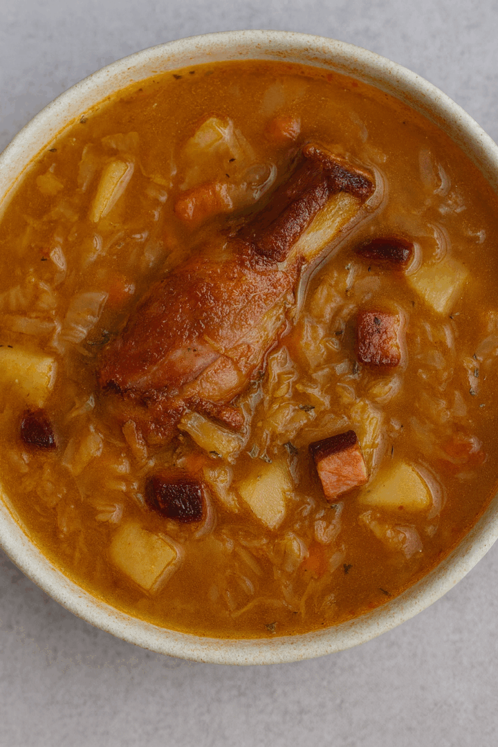 • 500 g żeberek wędzonych lub wędzonej golonki (na zdjęciu wygląda na wędzoną golonkę)
