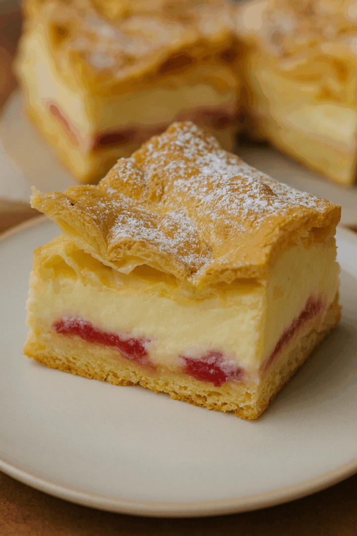 Karpatkę najlepiej schłodzić przez kilka godzin w lodówce, wtedy krem dobrze stężeje, a smaki się przegryzą.
