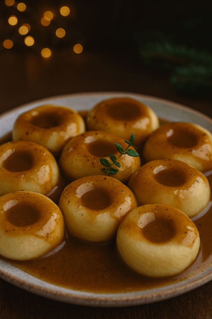 Kluski śląskie w aromatycznym sosie pieczeniowym
