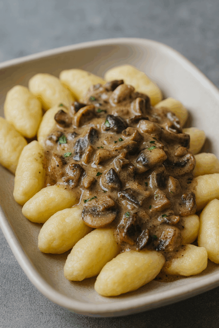 Kluski śląskie z sosem pieczarkowym