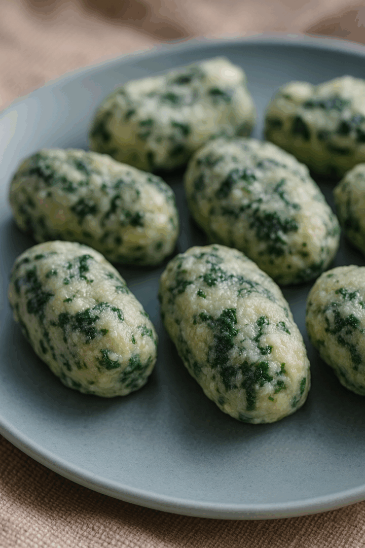 Kluski ze szpinakiem i białym serem