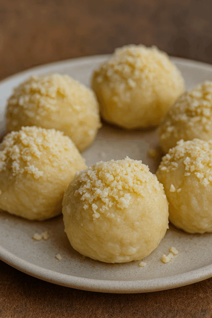 Wyrośnięte ciasto podziel na porcje i uformuj kulki wielkości mandarynki.