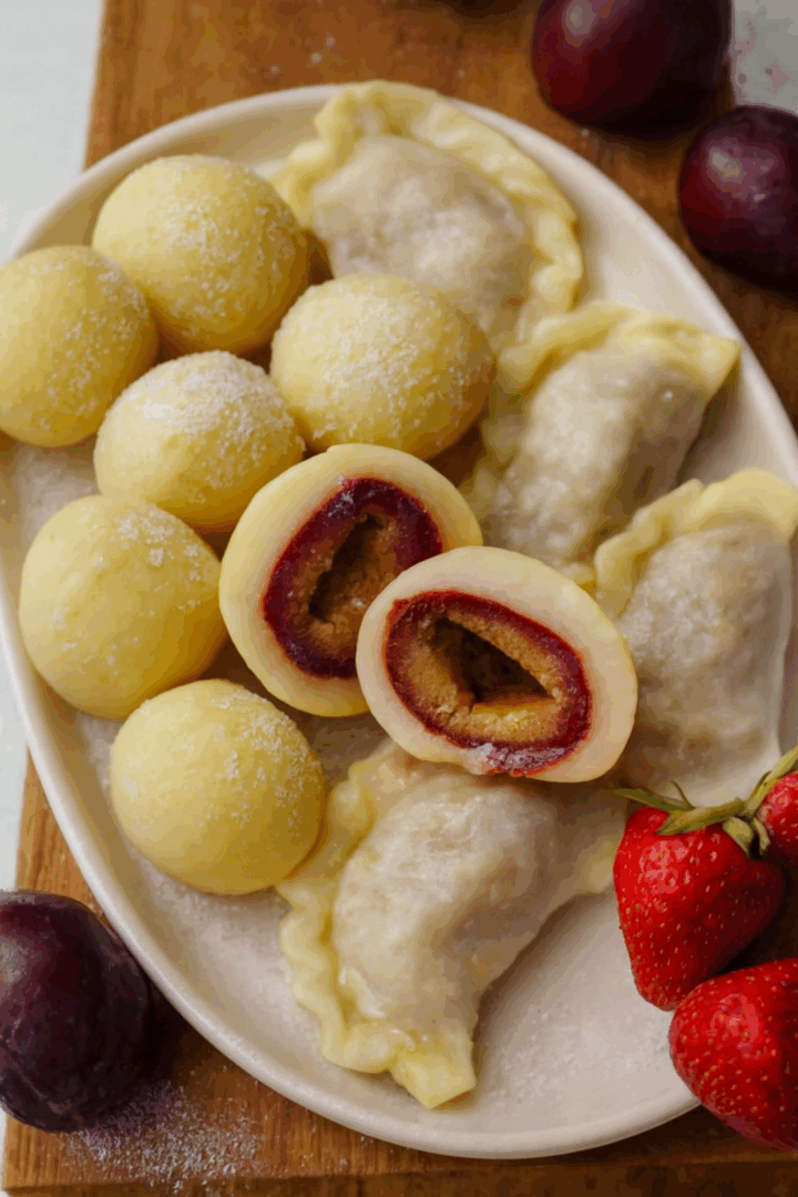 Knedle ze śliwkami i pierogi z truskawkami