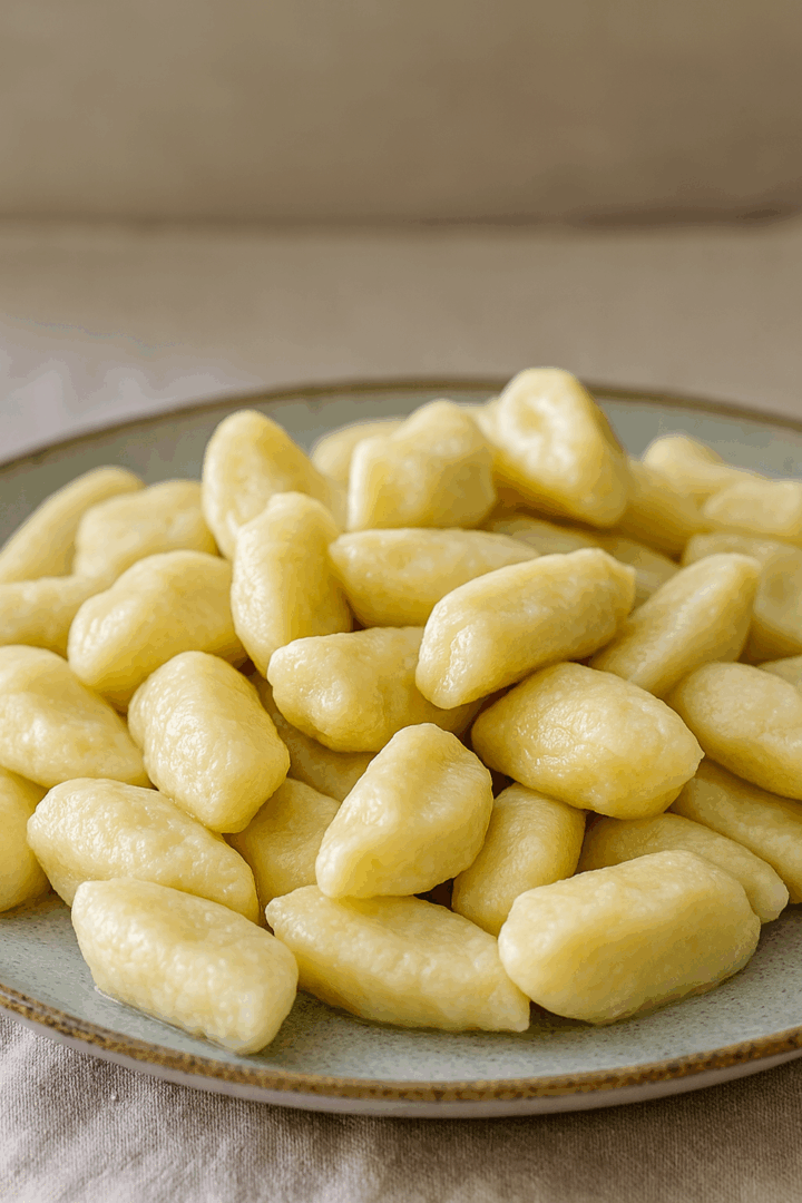 Wrzuć kluski partiami i gotuj 1–2 minuty od momentu wypłynięcia na powierzchnię. Wyjmij łyżką cedzakową i od razu podawaj.