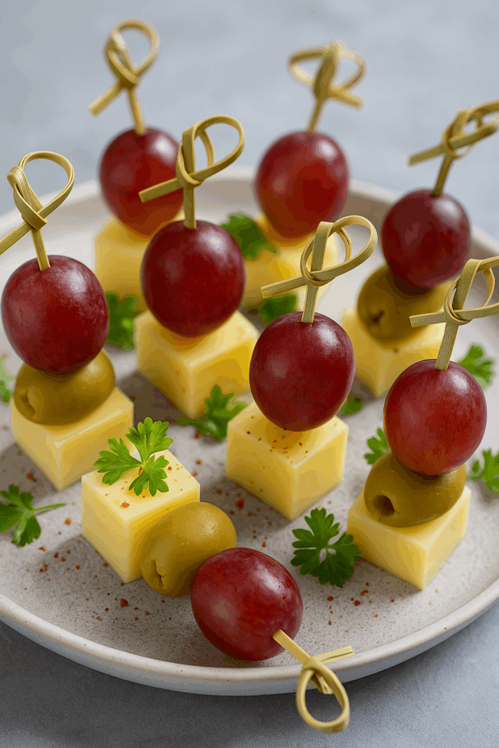 Koreczki z serem, winogronem i oliwkami