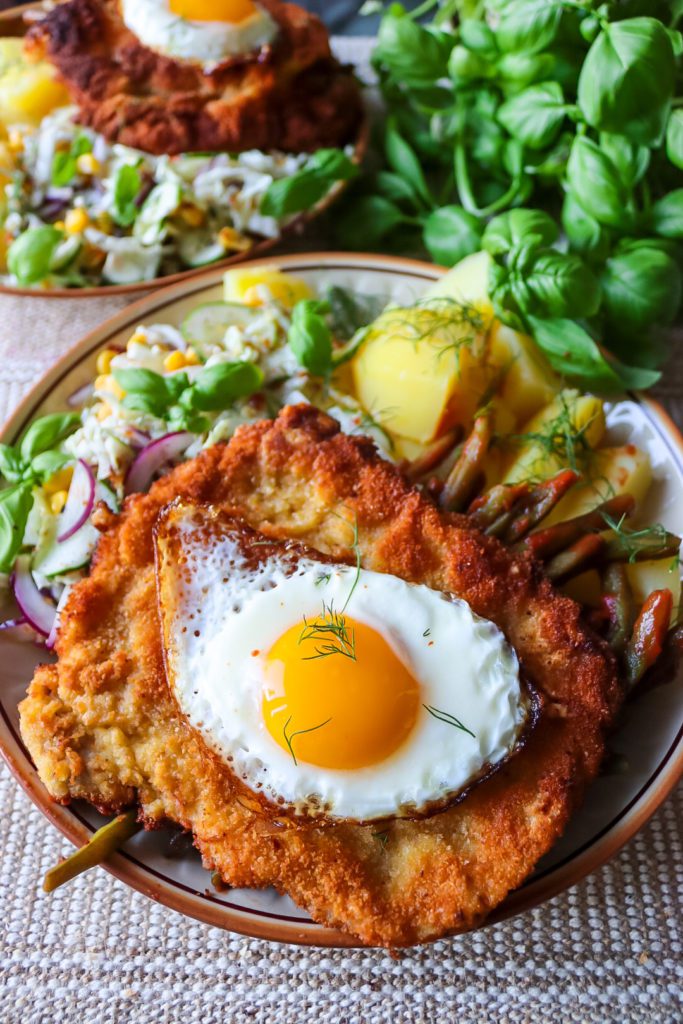 Schab moczony w mleku i cebuli. Chrupiąca panierka. Płynne żółtko, a do tego fasolka w pomidorach i pyszna, lekka sałatka. Dziś pokażę Ci jak przygotować ten pyszny obiad.