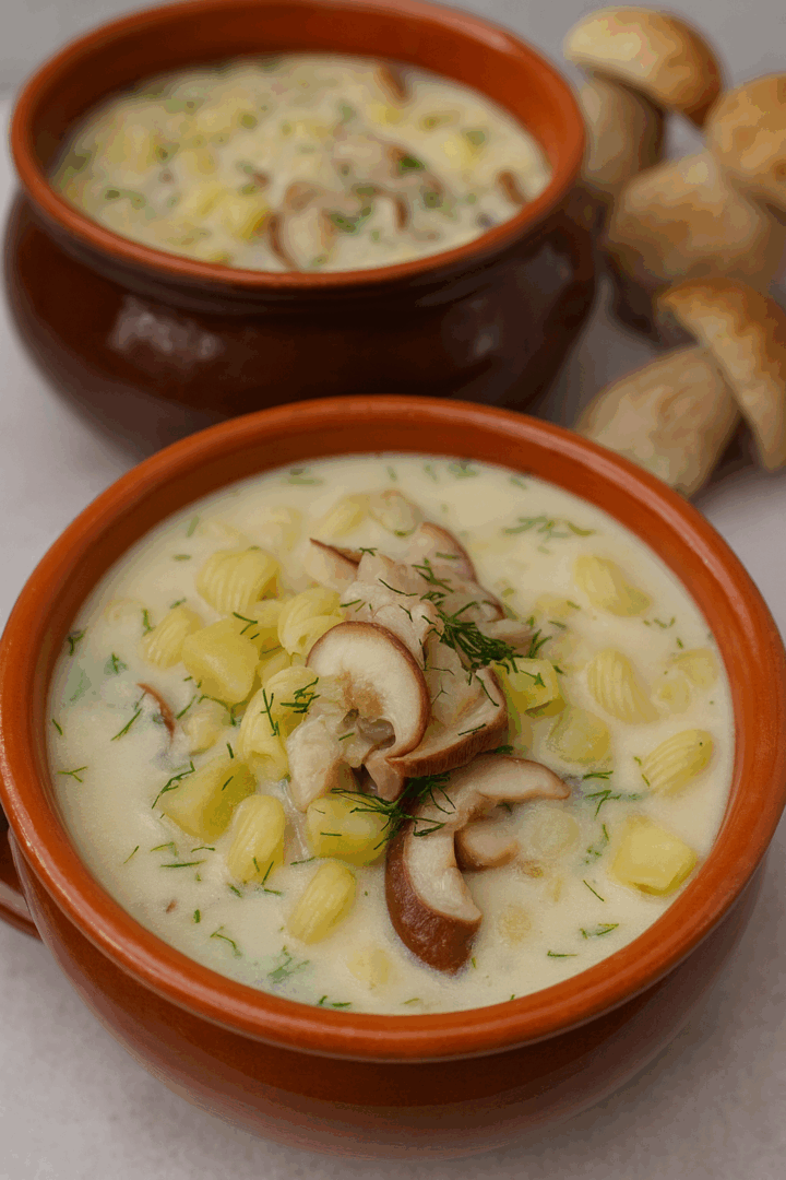 Kremowa zupa borowikowa z ziemniakami i makaronem