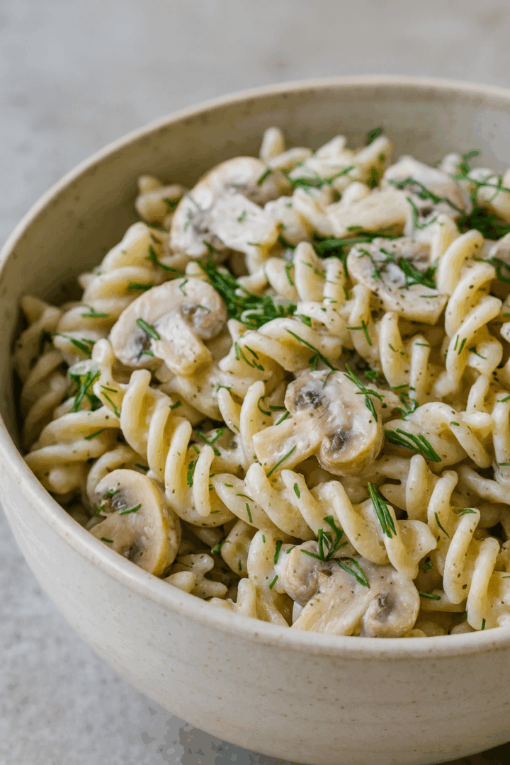 Kremowy makaron z pieczarkami