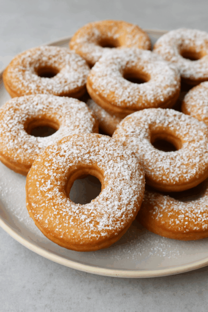 Każde ciastko posmaruj delikatnie zimną wodą lub białkiem jajka (żeby cukier się przykleił).
