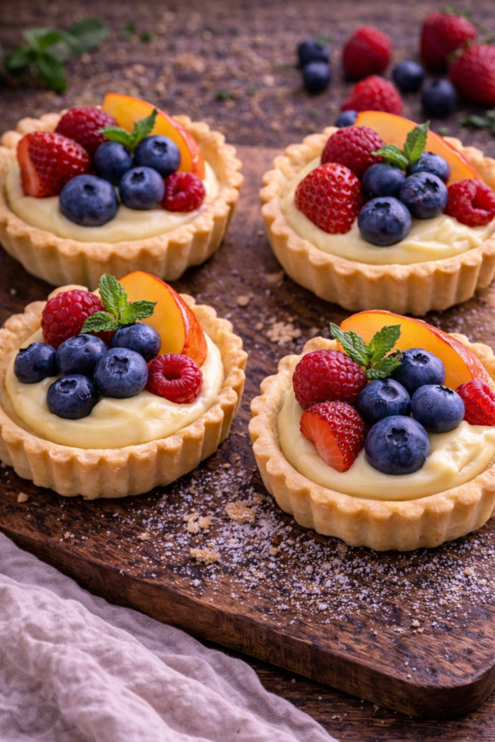 Kruche tartaletki z kremem waniliowym i owocami