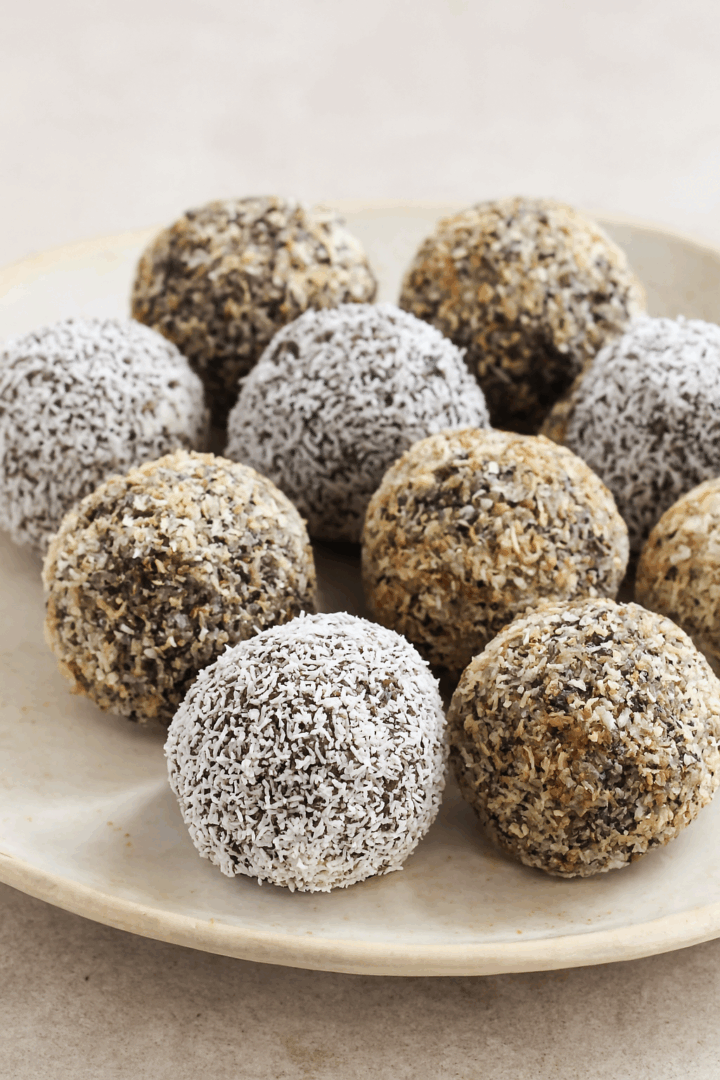 Kulki kokosowe / bajaderki – słodkie, bez pieczenia, obtoczone w wiórkach kokosowych lub w mieszance orzechowo-kakaowej.