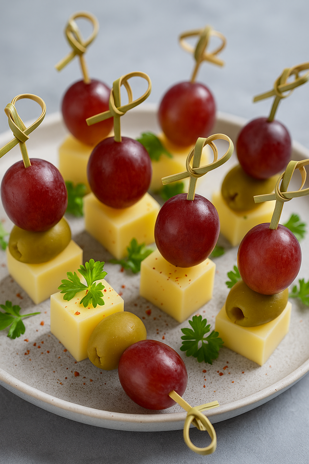 Składniki: (na ok. 12 sztuk): 12 kostek żółtego sera (np. gouda, edamski, ementaler lub cheddar) 12 zielonych oliwek…