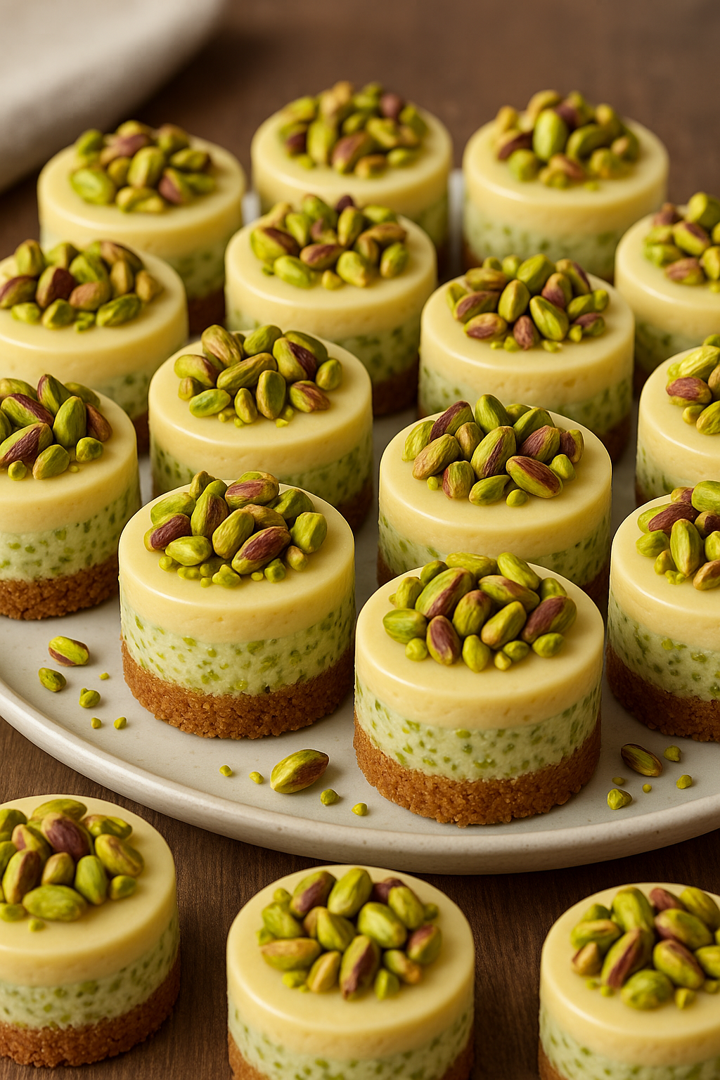 Świąteczne mini serniczki pistacjowe – trójwarstwowe, kremowe i bez pieczenia