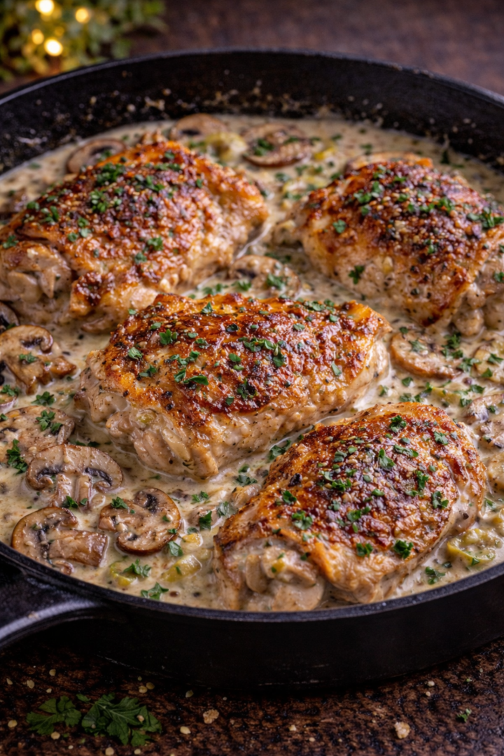 Kurczak w kremowym sosie pieczarkowym